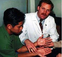 Dr Johnson has been one the original pioneers of developing endoscopic technology to treat this socially debilitating disorder and has published widely, taught many of the surgeons doing these procedures today and lectured worldwide on this particular topic and procedure. Hyperhidrosis is an unusual disorder that is variable from mild sweating in the hands to severely sweating hands that is treated with a short endoscopic procedure on the sympathetic nerve in the chest along the spinal column.