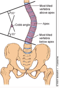 Image: Illustrations of how scoliosis curvature is determined from x-rays of the thoracic and lumbar regions